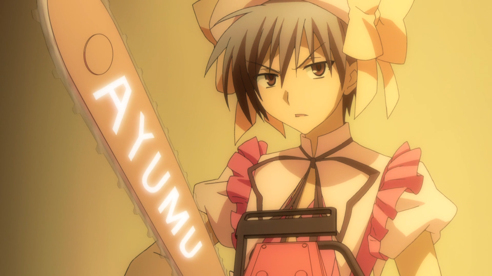 No estoy seguro de si hubiera llamado miedo a Ayumu, pero ciertamente está viviendo la no vida. ¿Cuántos zombis pueden decir que fueron resucitados por un nigromante llamado Eucliwood Hellscythe y se les dio la capacidad de convertirse en una chica mágica no muerta? Incluso le quita un poco del terror al invento más terrorífico hecho por la humanidad, la motosierra, al tener su monograma con letras brillantes. aunque eso es bastante envidiable en sí mismo. Supongo que solo estoy celoso.
